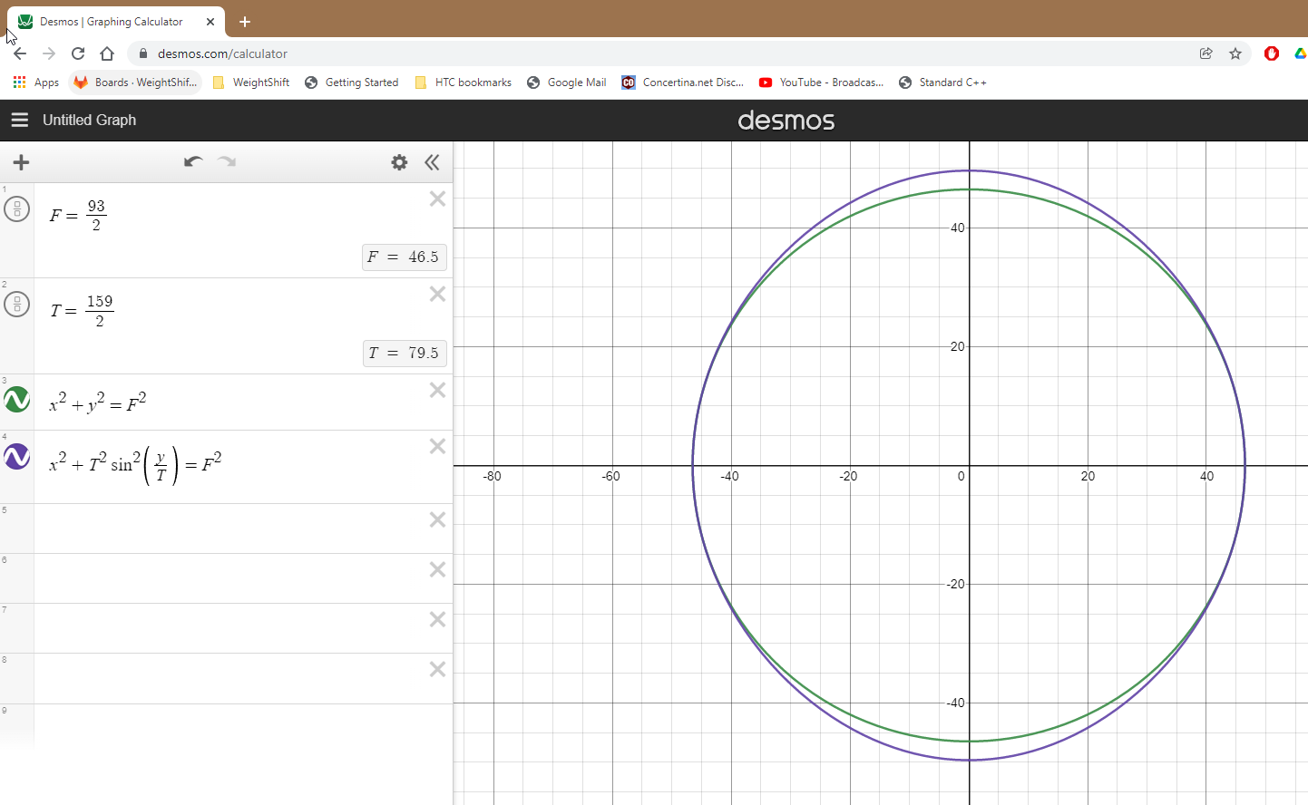 I printed that (via the share button, out of sight to the right), making sure to use the "zoom square" option in the graph settings. It (obviously) came out the wrong size, so I measured it, scaled the graph, and then printed again. Note it's actually the outer part that I wanted to keep for my cutting guide.