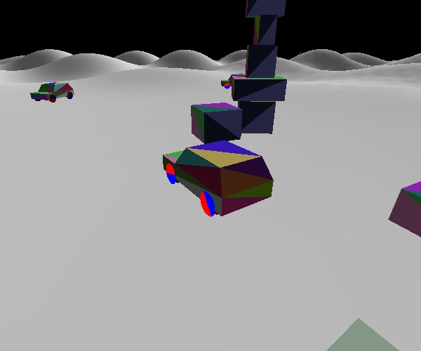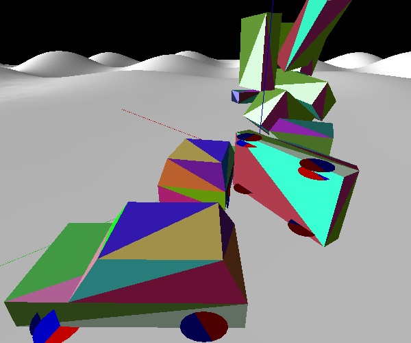 Carsim is a little "demo" I wrote to experiment with Verlet integration. When I have time I'll write a bit more about how I went about it, and what the good/bad things are about the scheme and my implementation. In any case you can download the windows executable, the source, the MSVC 6.0 project file and a makefile (for linux etc) using this link: