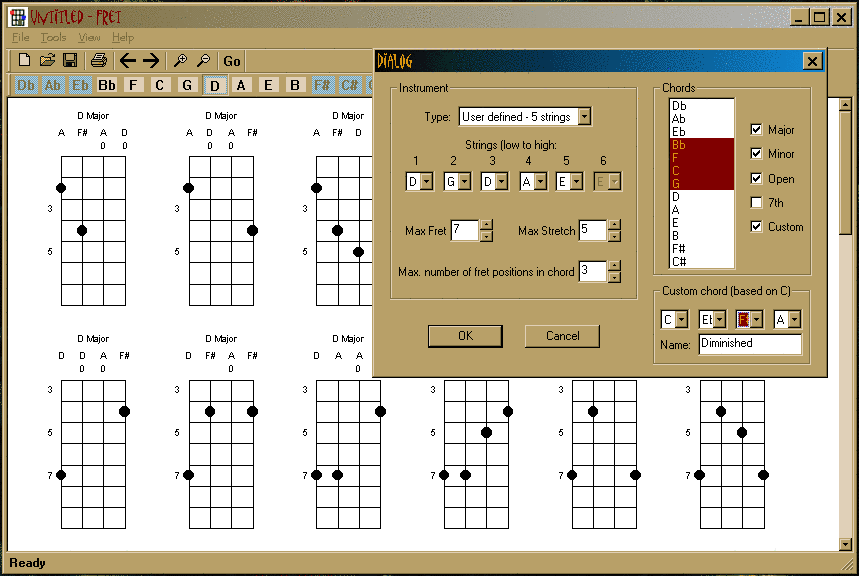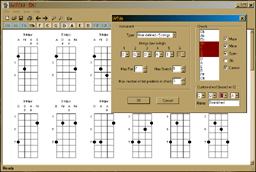 This is a simple program for generating chord shapes automatically - the idea is more to help see what the advantages/disadvantages of a particular tuning than to obtain a useful set of chord charts. It only considers chord shapes that cover all the strings, though obviously in practice you don't need to use all the chord shape. Some of the chord shapes it comes up with (especially those for instruments with more strings) might require drastic surgery!!