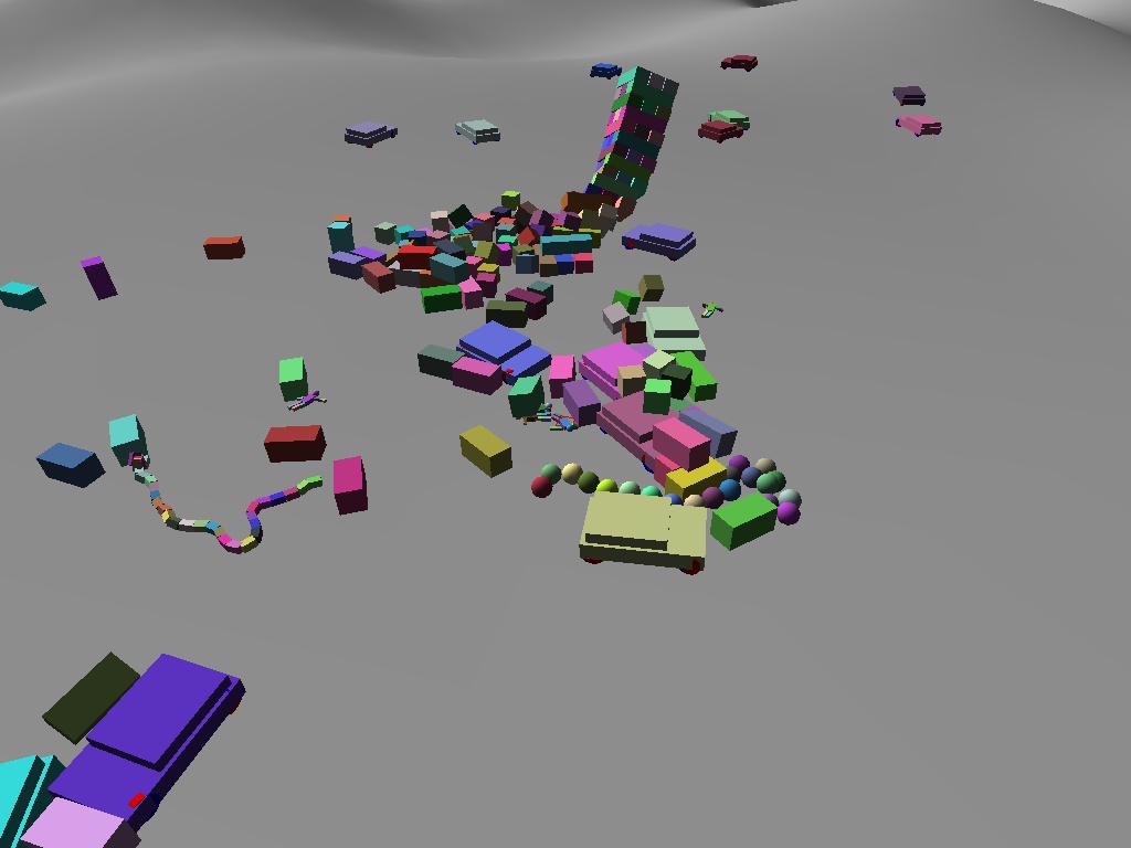 You can see a movie of it (version 0.70) running a wall/pyramid (128 boxes
