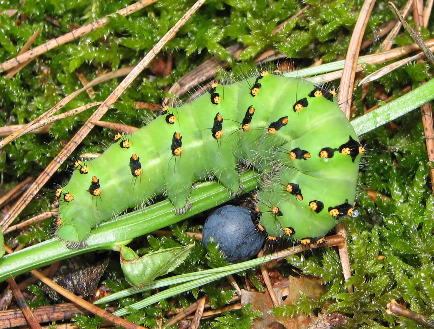 | Emperor moth caterpillar | 23/7/2005 | Woods by Rodental. Blueberry is so you can estimate the size! |