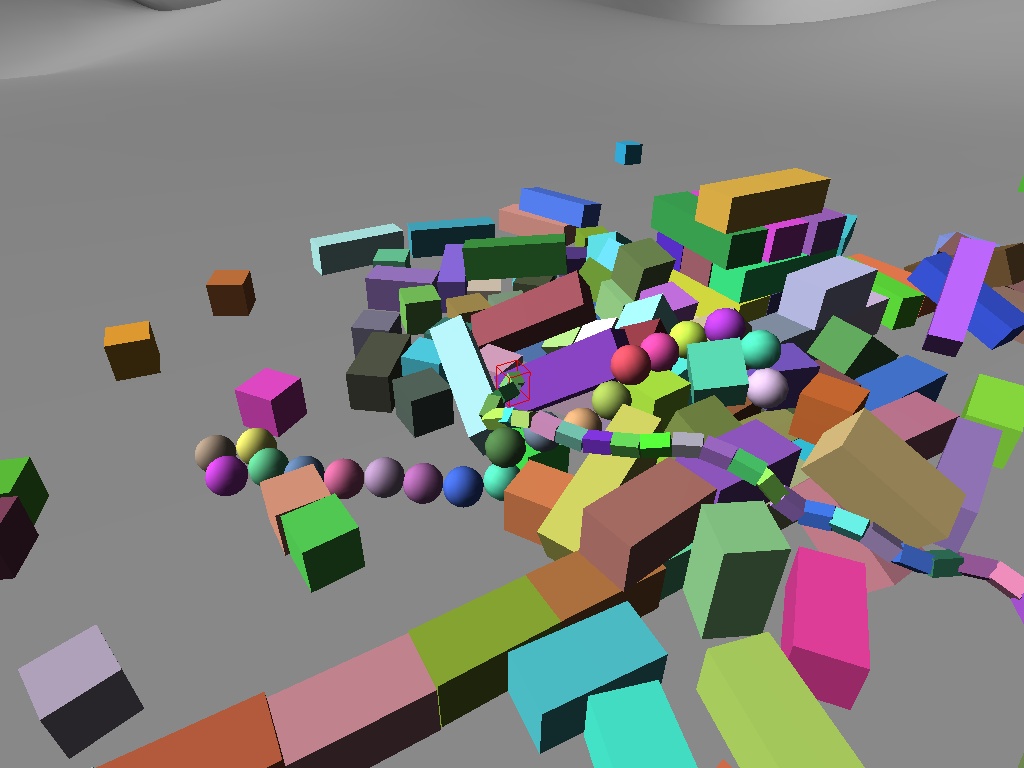You can see a movie of it (version 0.70) running a wall/pyramid (128 boxes
